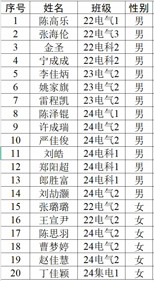根据《关于2025年“温州宏丰未来之星”项目学生报名选拔的通知》要求,经自主申报、学院评选,拟推荐以下20名同学参加蜜桃视频 “温州宏丰未来之星”之“中国西电、西安交大暑期研学”。