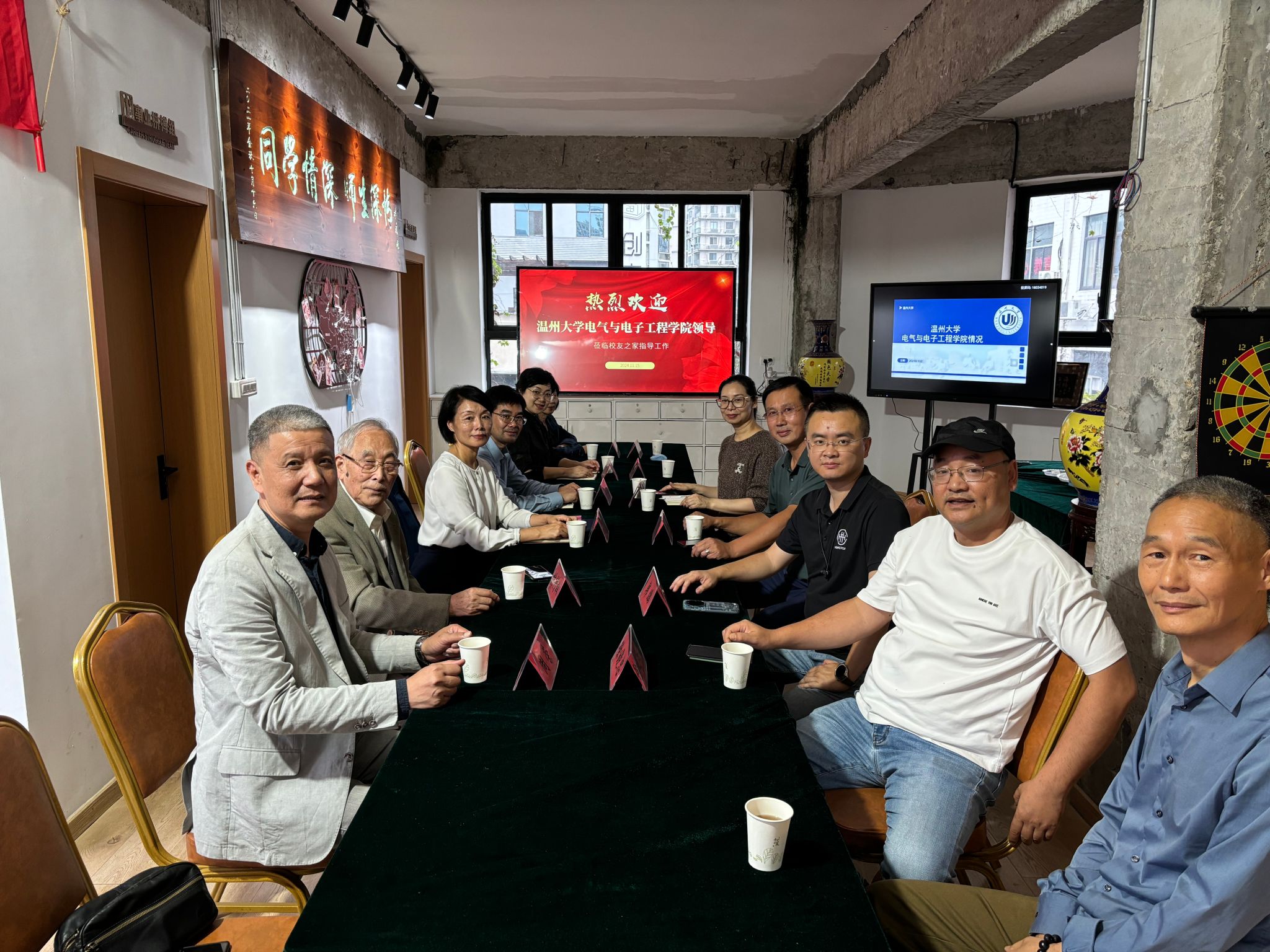 2024年11月15日,学院党委书记陈文远、学校校友办副主任蔡晓武等一行赴东瓯智库电气电子学院“校友之家”召开校友工作座谈会。学院校友会第一届理事会顾问林精权、吴桂初出席,会长李伟,秘书长韩鹏,副秘书长徐晓忠、潘美娟、潘道品等参会交流。