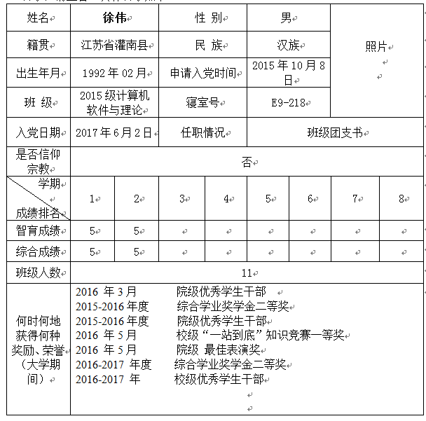 经本人申请,组织审查,数电学院研究生第二党支部讨论研究,拟转正徐伟同学为中共正式党员。按照发展党员的程序与规]定,现将该同志有关情况予以公示,请监督。具体公示如下: