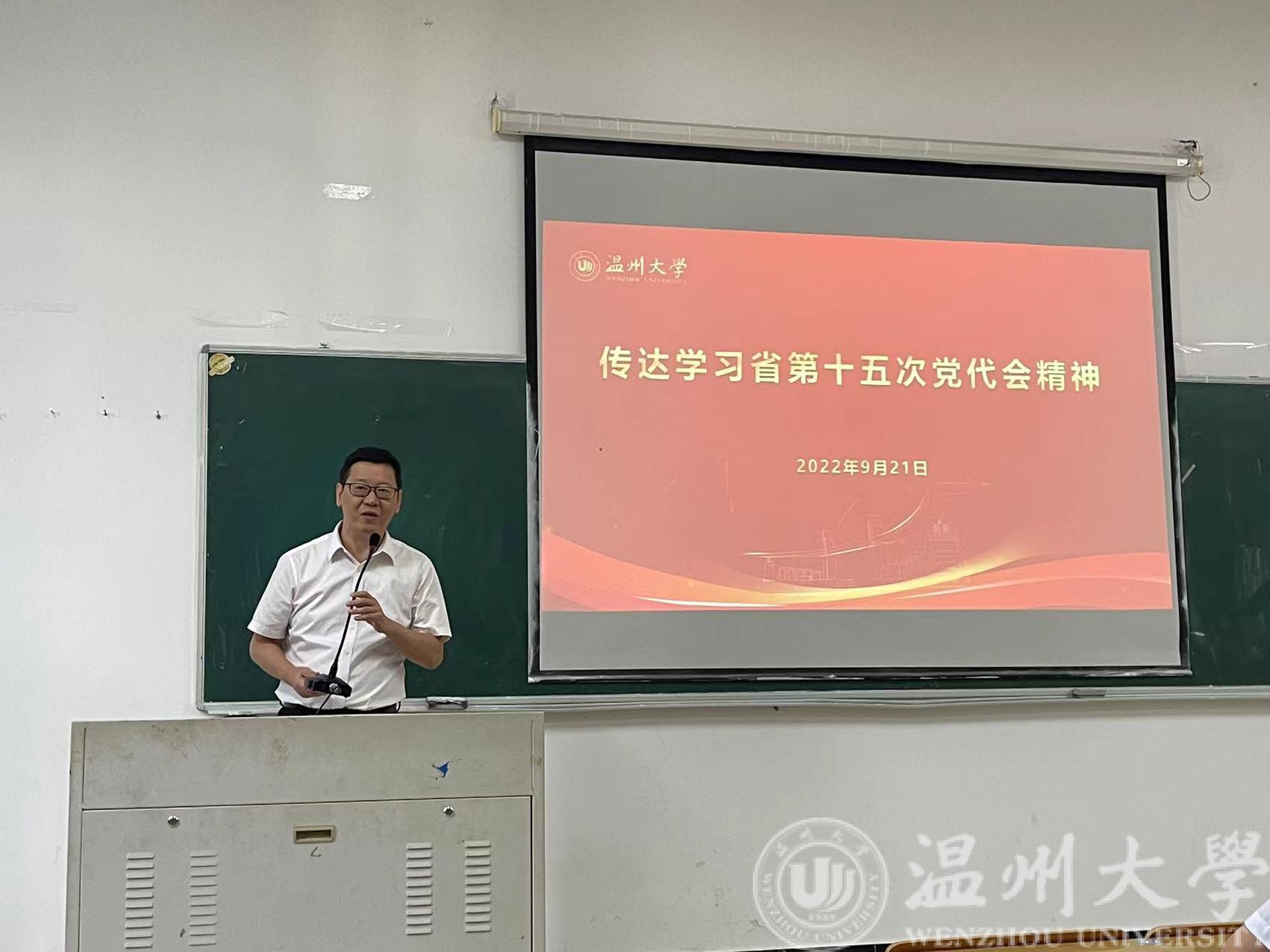 9月21日下午,蜜桃视频 召开全院教职工大会,校党委委员、组织部部长郑信军莅临蜜桃视频 传达学习浙江省十五次党代会精神,会议由学院党委书记李方强主持会议,全院教职工和学生代表参加会议。
