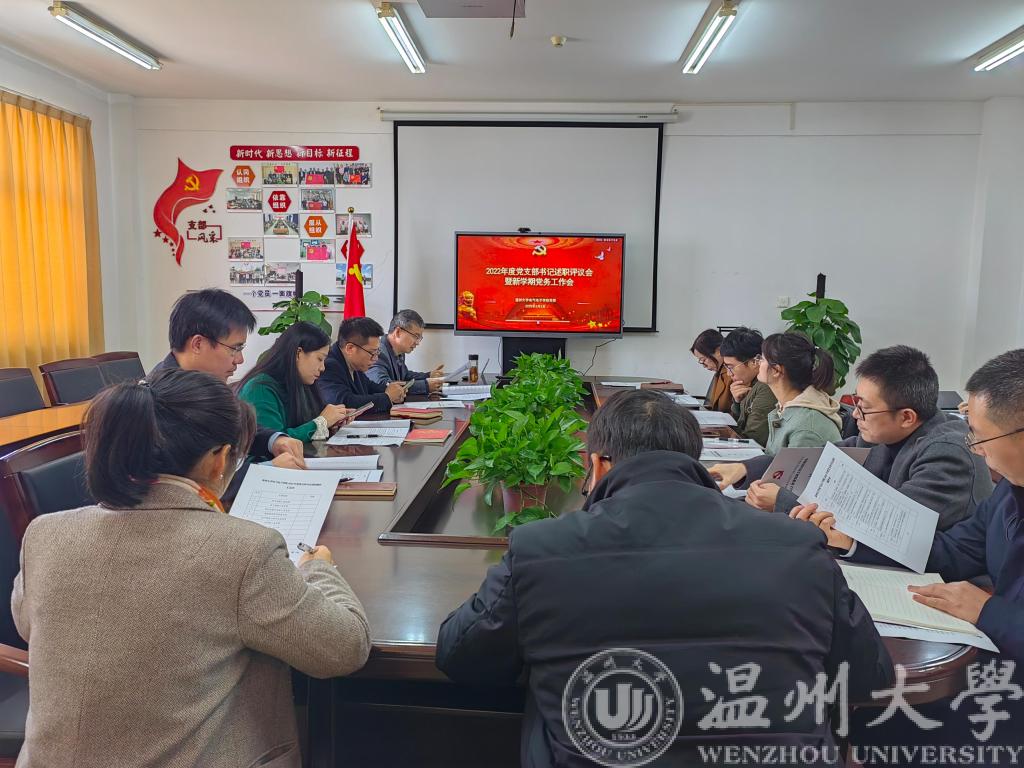 为深入贯彻落实党的二十大精神,扎实推进党建工作责任制,不断加强和改进基层党组织建设,3月2日下午,蜜桃视频 党委组织开展了2022年度党支部述职评议会议暨新学期党务工作会议,学院党委班子成员、专职组织员、11位师生党支部书记参加会议。会议由学院党委书记李方强主持。