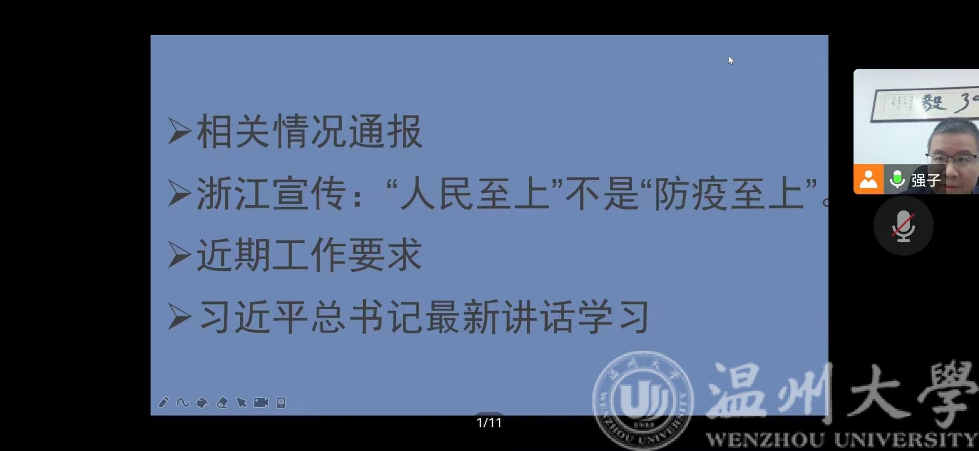 最后,汪鹏君院长对期末教学工作、防疫与安全工作做出了指示并强调,老师们在日常工作中要加强与学生的沟通,关注学生动态。