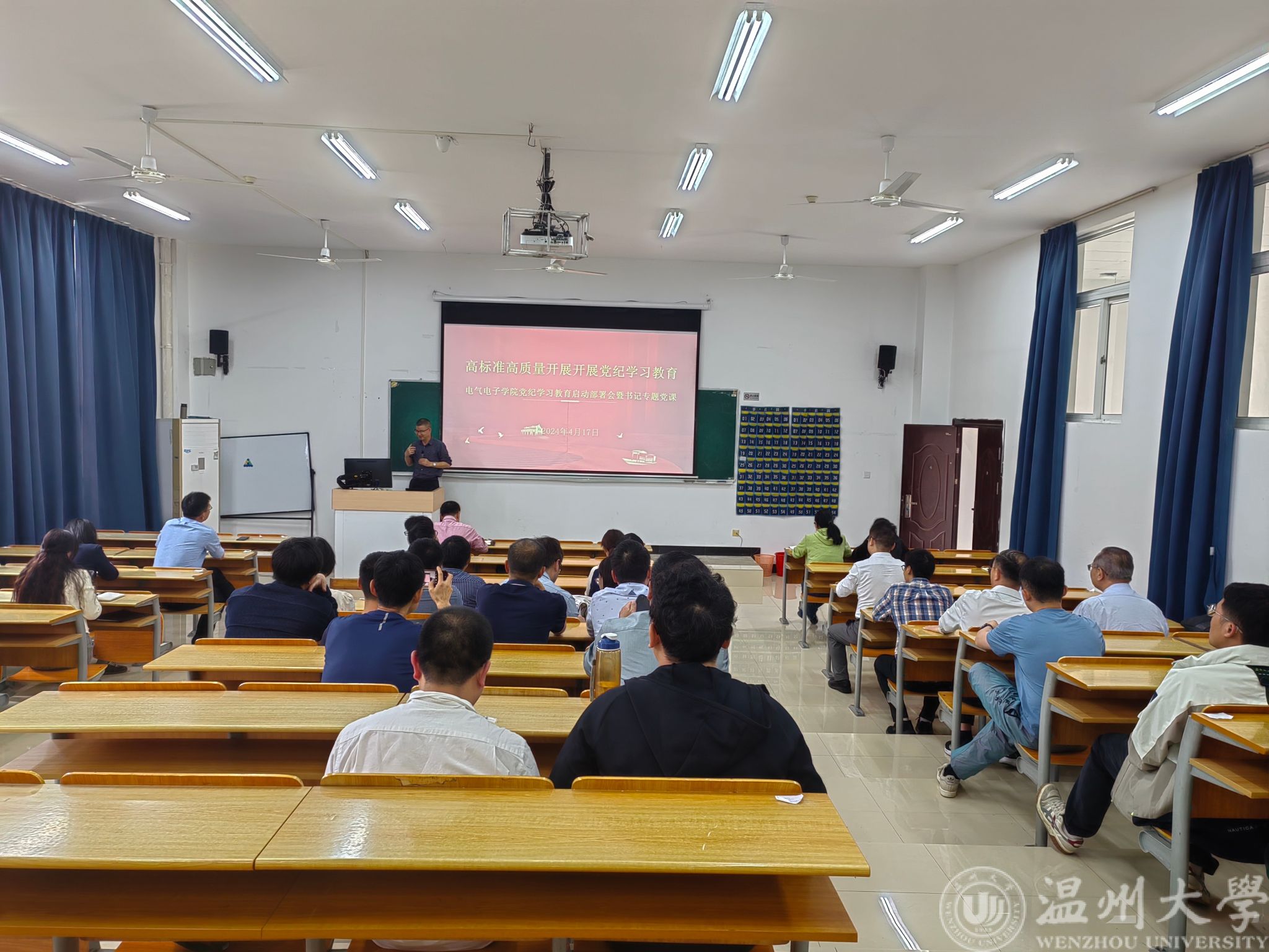 随后,学院党委书记李方强以《学习语:把纪律建设摆在更加突出位置》为题,讲授党纪学习教育主题。他围绕“全面加强党的纪律建设”主题,分“纪律是管党治党的‘戒尺’”“扎紧党纪党规的笼子”“在党的纪律规矩中,政治纪律和政治规矩是最根本、最重要的”三个主题,带领与会同志们一起学习了党的十八大以来,习近平总书记关于党的纪律建设的部分重要论述。