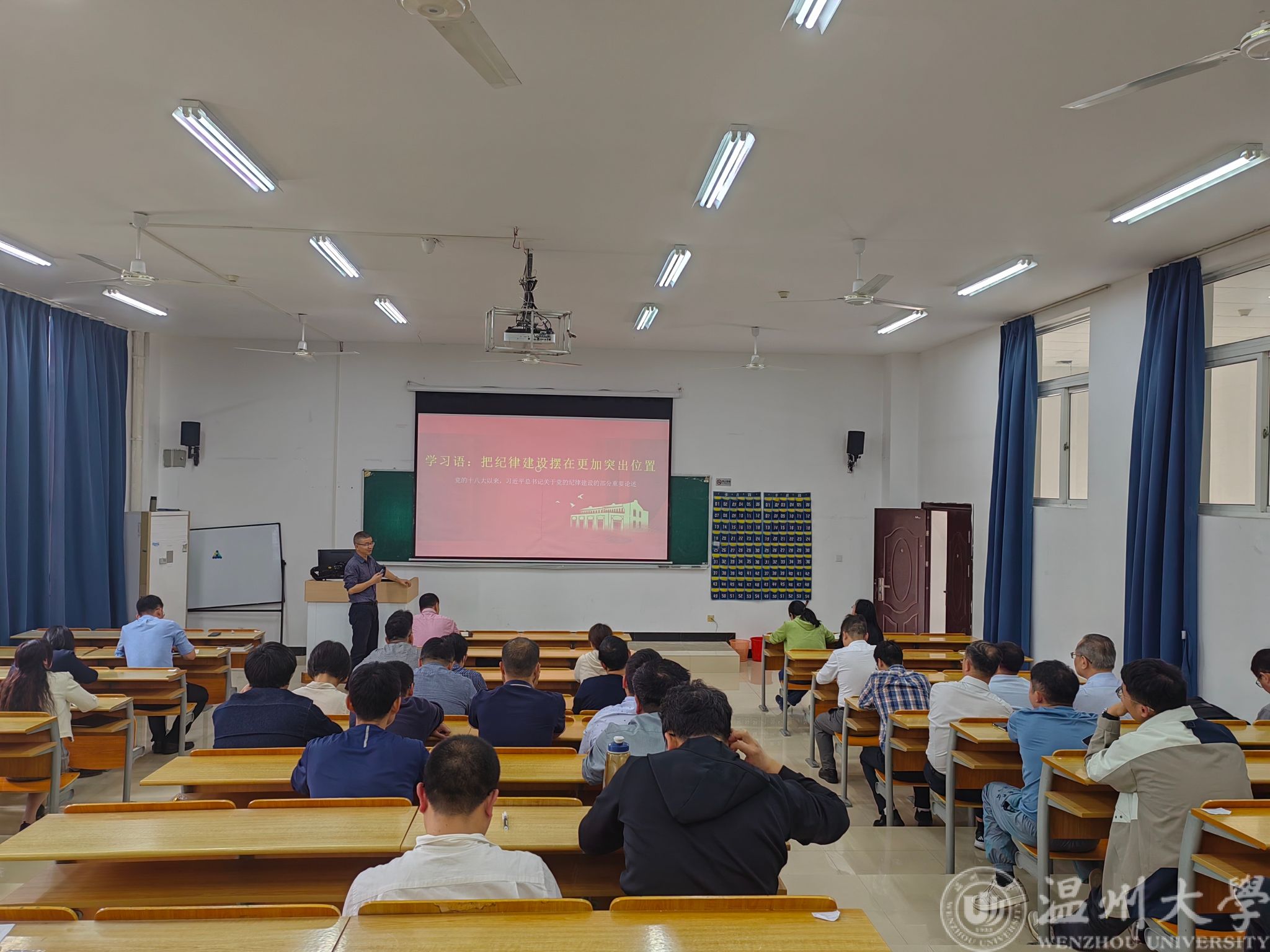 会议传达了党中央、省委、市委、校党委关于党纪学习教育的要求,并按照学校党纪学习教育工作方案的要求对学院党纪学习教育做出部署。会议要求各师生支部要压实责任,率先垂范,对各项任务举措明确责任和具体要求,不折不扣抓好落实,周密安排部署,确保各项工作落实见效;全体师生党员特别是党员领导干部要原原本本学习《中国共产党纪律处分条例》(以下简称《条例》),逐章逐条精读细读,做到学纪、知纪、明纪、守纪,推动《条例》入脑入心,深化《条例》理解运用。