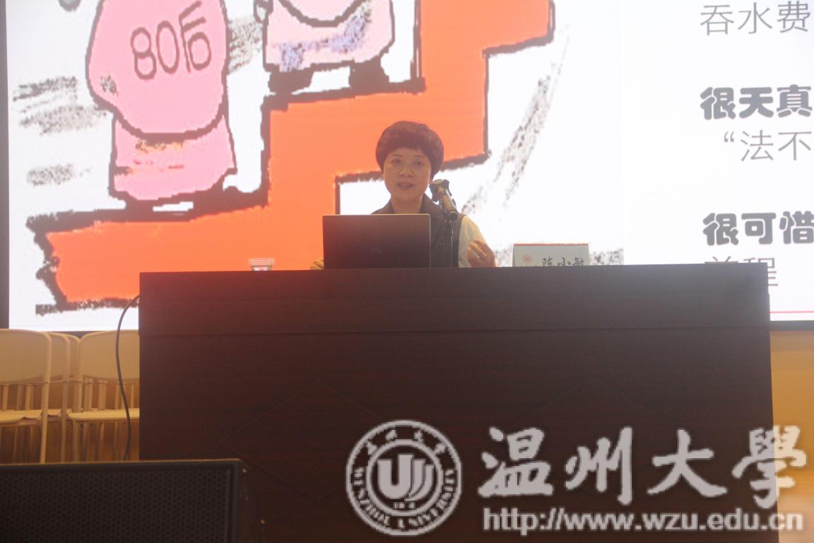 陈小敏老师的讲座充实有趣,在阐述每个观点时都会举出许多真实的案例来让大家更好的理解。陈小敏老师由“廉洁”开篇,讲述了立德树人的重要性,并举了三个贪婪、腐败、自私的真实例子来论证,得出“成功、幸福的人生需要高尚的道德情操保驾护航”的结论。陈小敏老师还分析了古时的“道”与“德”的意义,告诫同学们“道”是“德”的体,“德”是“道”的用。“人才可以分四种,有德有才是精品、有德无才是半成品、无德无才是废品、有才无德则是毒品”,陈小敏老师的这段话说明了道德的重要性。讲座快结束时陈小敏老师提出希望同学们能够做到“爱国、敬业、诚信、友善”的好品质的建议,并例举了西点军校的校训等许多励志感人的名言警句来警醒同学们。