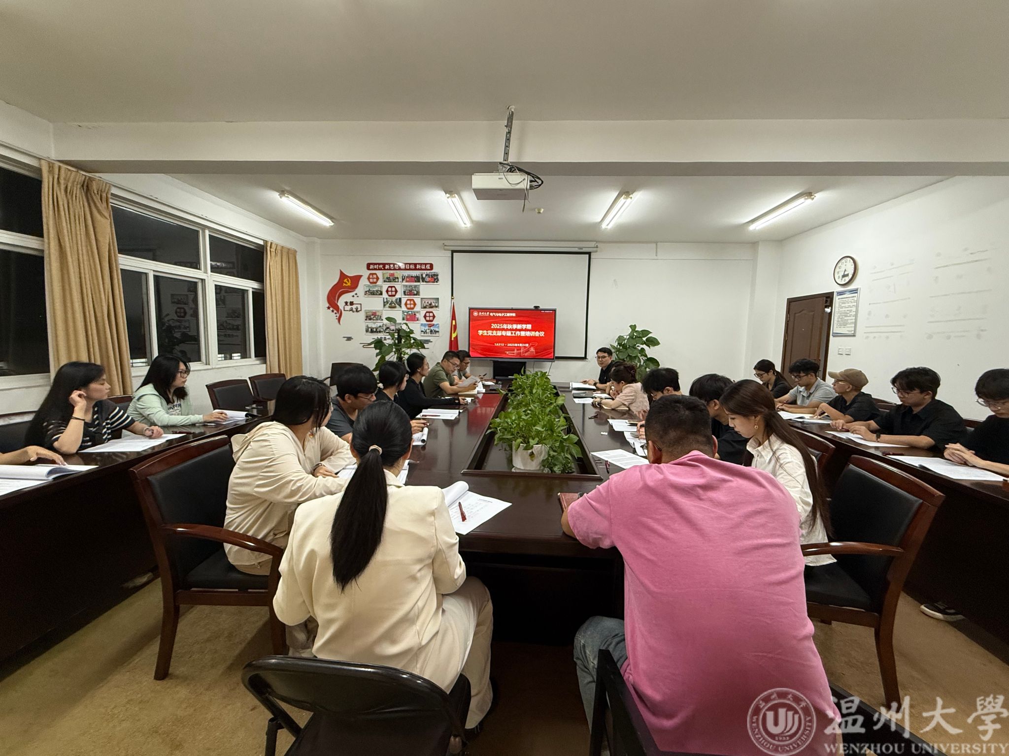 为推进新学期学生党支部建设,蜜桃视频 于2025年9月24日召开新学期学生党支部专题工作暨培训会,学院党委副书记翁浩、组织员金海艳,以及各学生支部书记、支委,学院党员服务中心主要学生干部参加了会议。会议由学生党建工作负责辅导员潘龙飞主持。