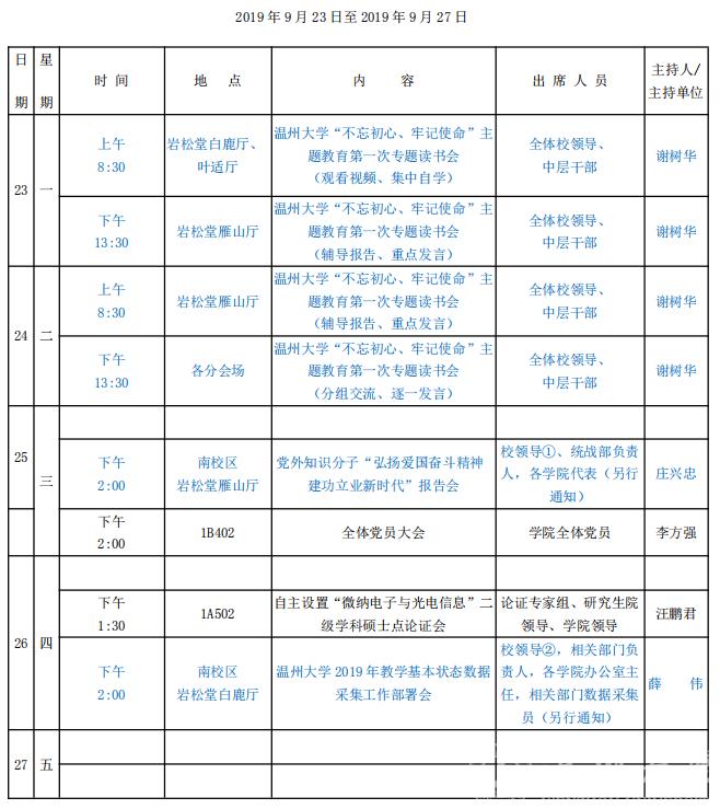 学院第5周行事历