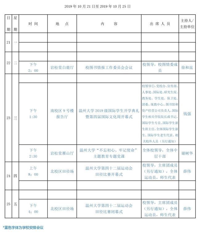 学院第7周行事历