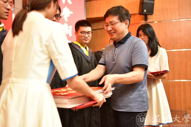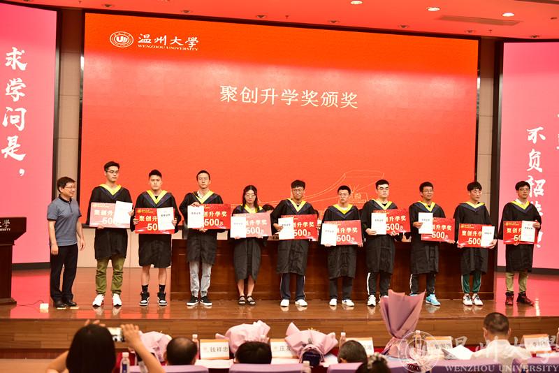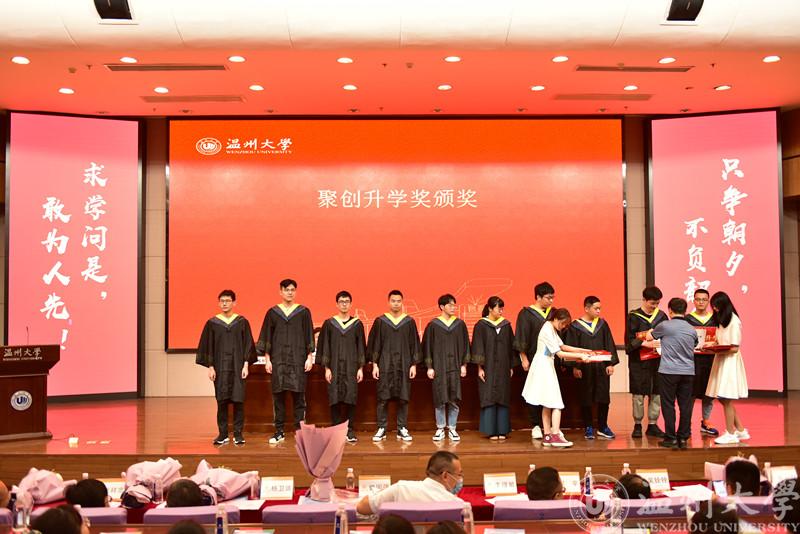 获得此次聚创升学奖的同学共有58人,这58位获奖者均为今年学院考上硕士研究生,即将升学深造的学子。伴随着激昂的旋律,学子们逐一上台,领取着属于他们的荣誉,由聚创奖学金资助者——聚创公司董事长、学院资深教授吴桂初老师对获奖同学一一进行颁奖。在过去的一年里,他们用拼搏和坚守在数百万的考研大军中胜出,拿到了攻读硕士研究生的录取通知书,考研复习的艰难、疫情之下的挑战都阻挡不了他们对知识的渴求和对改变命运的坚持。毕业是本科学习阶段的结束,也是新的人生征程的启航,而“聚创升学奖”与毕业典礼同步举行,一方面是为了表彰先进,另一方面也是勉励即将深造的各位学子勇攀高峰、再创辉煌!